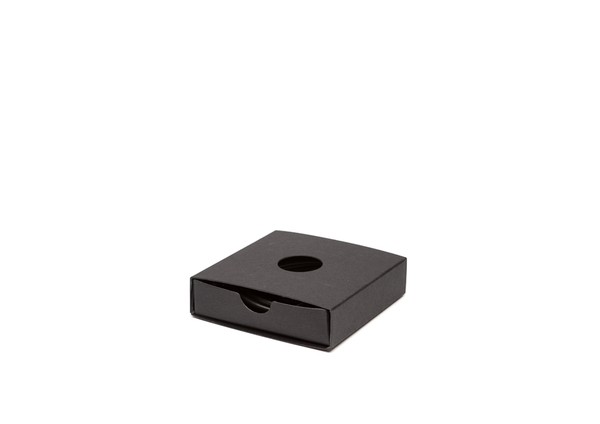 The packaging draws its inspiration from the gem and mineral world. The outside is covered a matte black surface criss-crossed by thin lines of spot varnish that form irregular facets like those of a natural crystal formation.