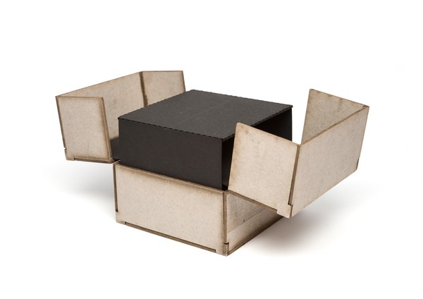As the customer opens the package a folded-paper mechanism, like those found in pop-up books, raises the device upwards as if it were being borne up from the depths of the earth where it was formed.